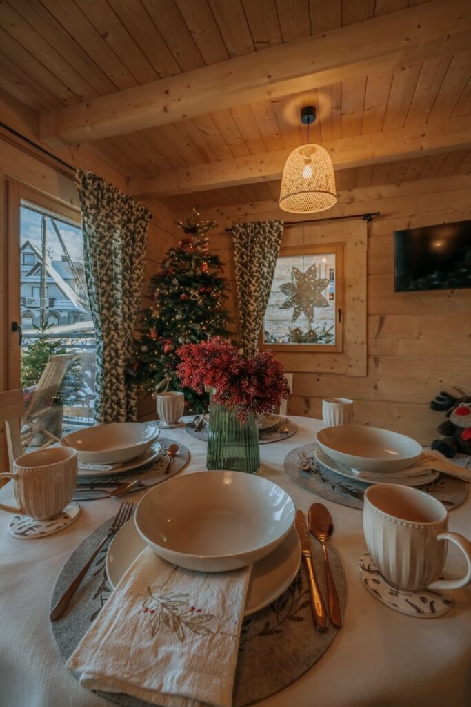 - Każdy domek i apartament jest dekorowany na czas Świąt i posiada choinkę.